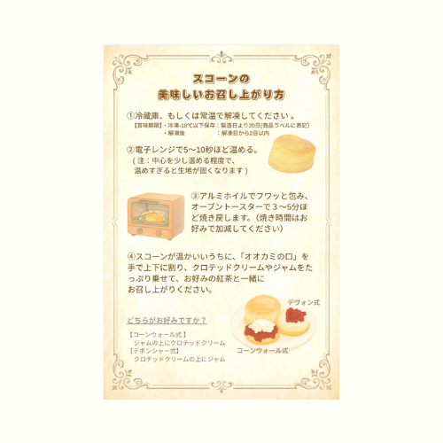 コッツウォルズの5つ星ホテルのレシピをもとに、厳選された素材を使い独自にアレンジを重ねた人気のスコーン。 当店のパティシエが心を込めて手作りし、気密性の高い南蛮窯でふっくら焼き上げたそのままに瞬間冷凍することで、お店の味をご自宅でお楽しみいただけます。